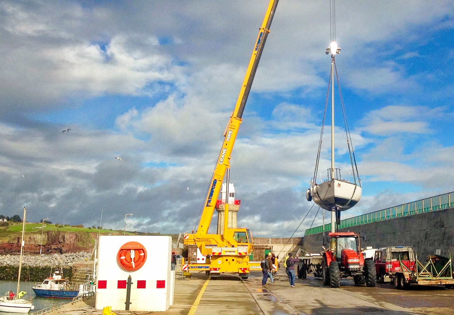 Lifting yachts from the water in Dunmore East, Co.Waterford
