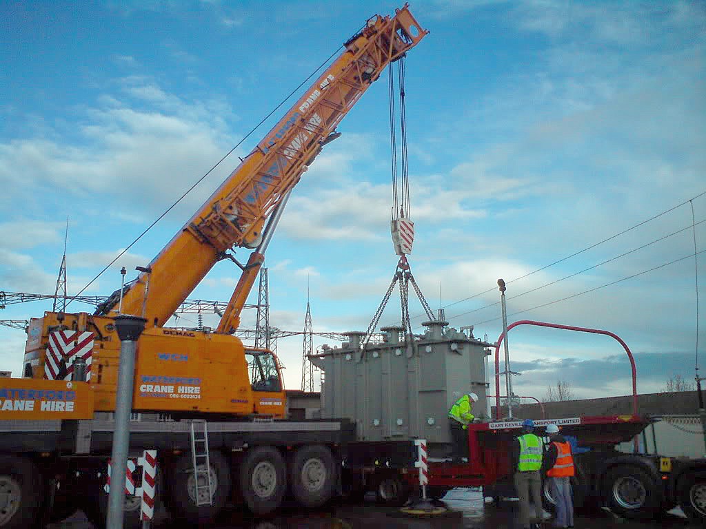 Loading 56 tonne transformer inside a substation in Kilkenny City